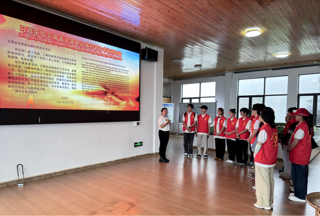 走进永和新村服务中心,习近平总书记给云南省沧源县边境村老支书们的回信映入眼帘,在实践队指导老师的带领下,实践队员们重温了习近平总书记给云南省沧源县边境村老支书们的回信,实践队员们纷纷表示将永远牢记习近平总书记的谆谆嘱托,永远听党话、感党恩、跟党走,珍惜韶华、学好本领,以“我们都是收信人”的奋进姿态投身于建设美丽家乡的伟大事业中,唱响新时代各族人民的幸福之歌。