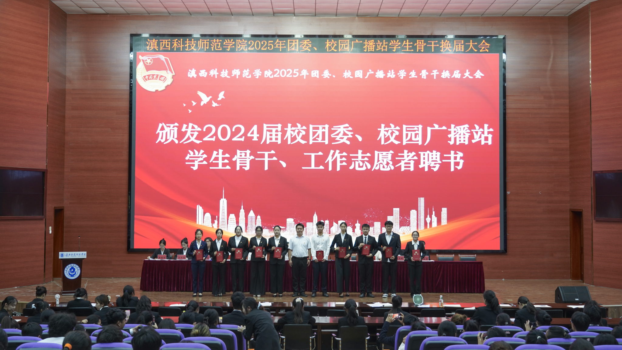 6月21日,滇西科技师范学院2025年校团委、校广播站学生骨干换届大会在同声传译室顺利召开。校团委书记李玲出席会议并讲话。
