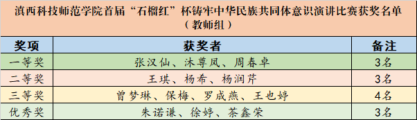 经过激烈角逐,比赛评选出教师组一等奖3名、二等奖3名、三等奖4名、优秀奖3名;学生组一等奖5名、二等奖6名、三等奖7名、优秀奖6名。