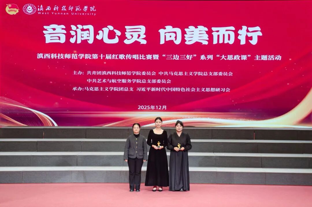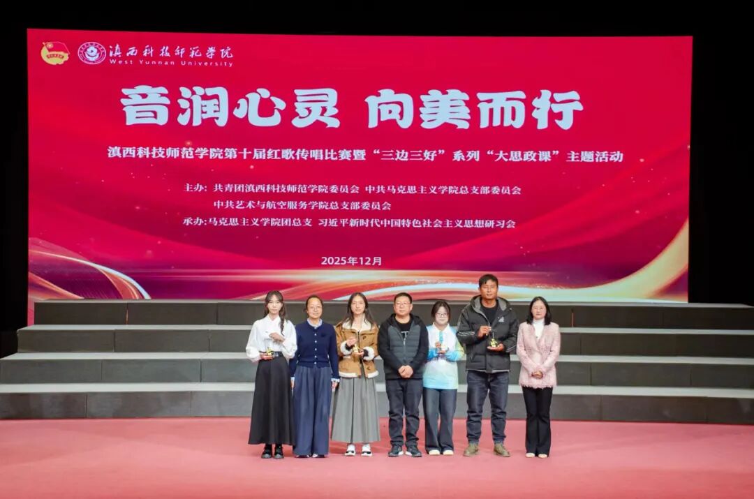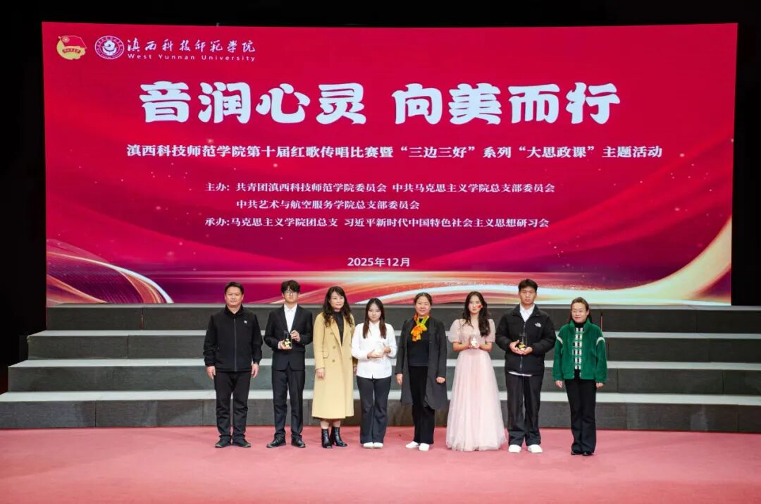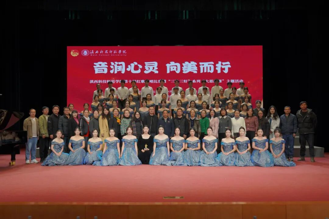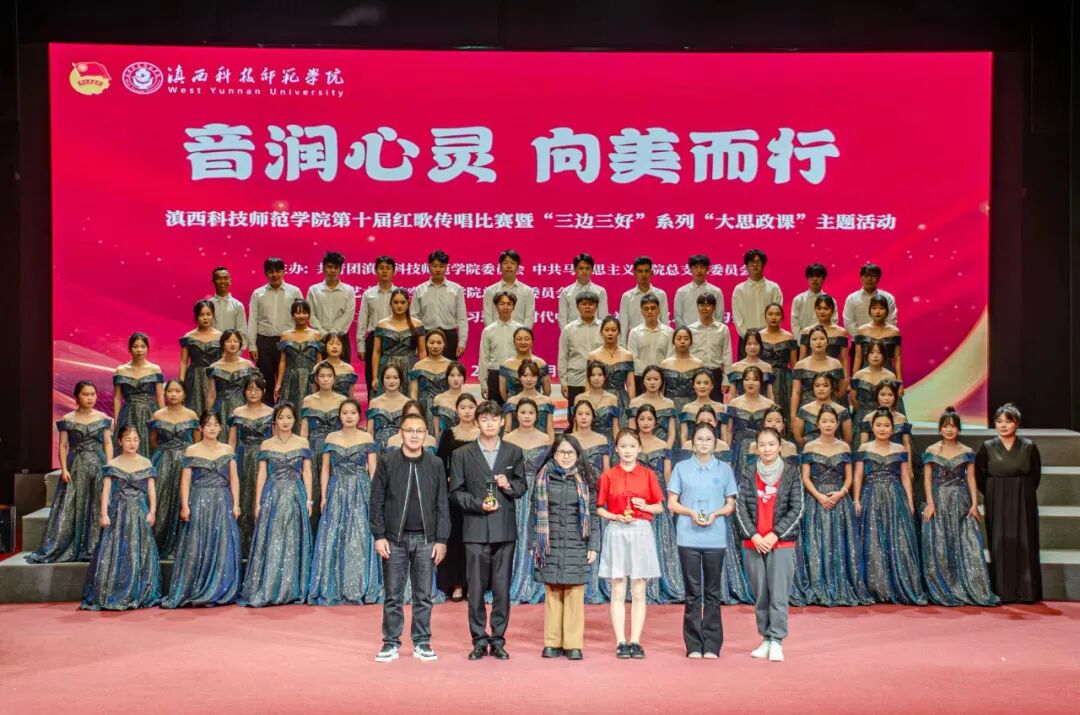 本次比赛以“音润心灵 向美而行”为主题,来自全校13个二级学院的参赛队伍倾情献唱。《没有共产党就没有新中国》《我的中国心》《在太行山上》《阿佤人民唱新歌》等一首首镌刻时代印记、饱含家国情怀的经典歌曲接连上演。同学们用激昂嘹亮的歌声,深情回望党的峥嵘岁月,热情礼赞改革开放的伟大成就,豪迈唱响民族复兴的壮阔征程。比赛充分展现了新时代滇院学子坚定不移听党话、跟党走,扎根边疆、心向中央的赤子情怀和昂扬向上的精神风貌。经过激烈角逐与专业评审,比赛评选出各类奖项。