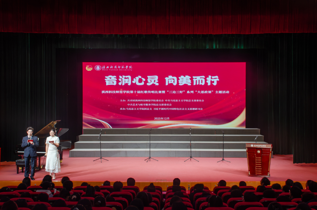 12月7日晚,滇西科技师范学院第十届“音润心灵 向美而行”红歌传唱比赛暨“三边三好”系列“大思政课”主题活动在学校综合会堂成功举行。校党委副书记施勇出席活动并为活动致辞。
