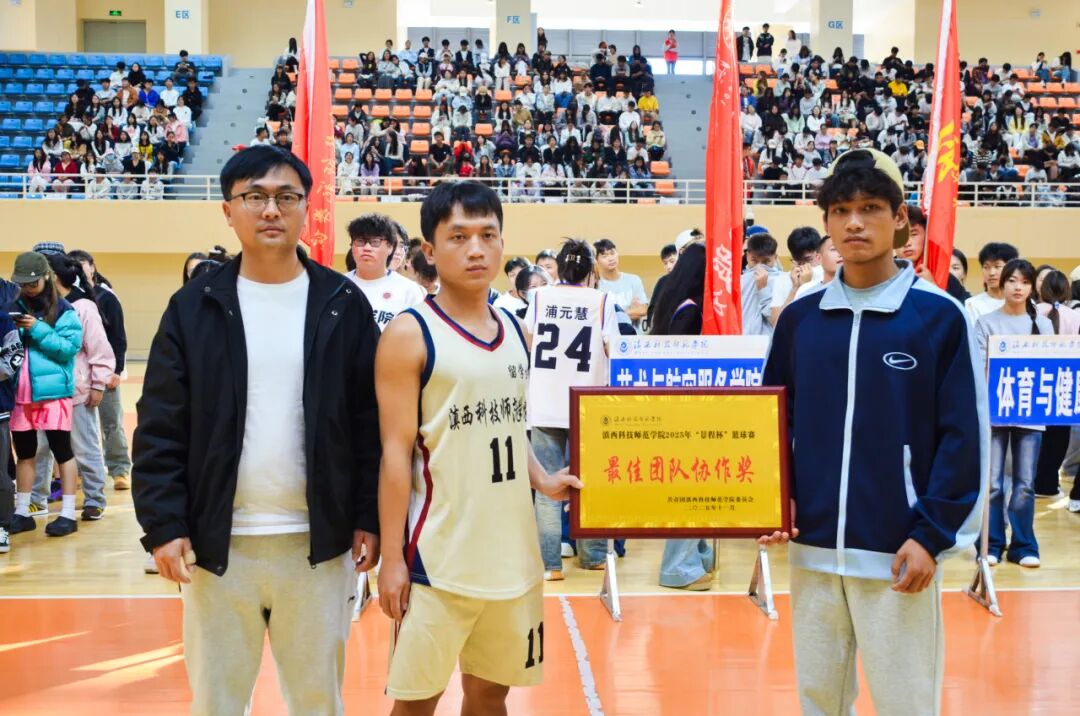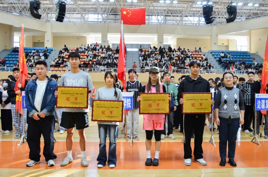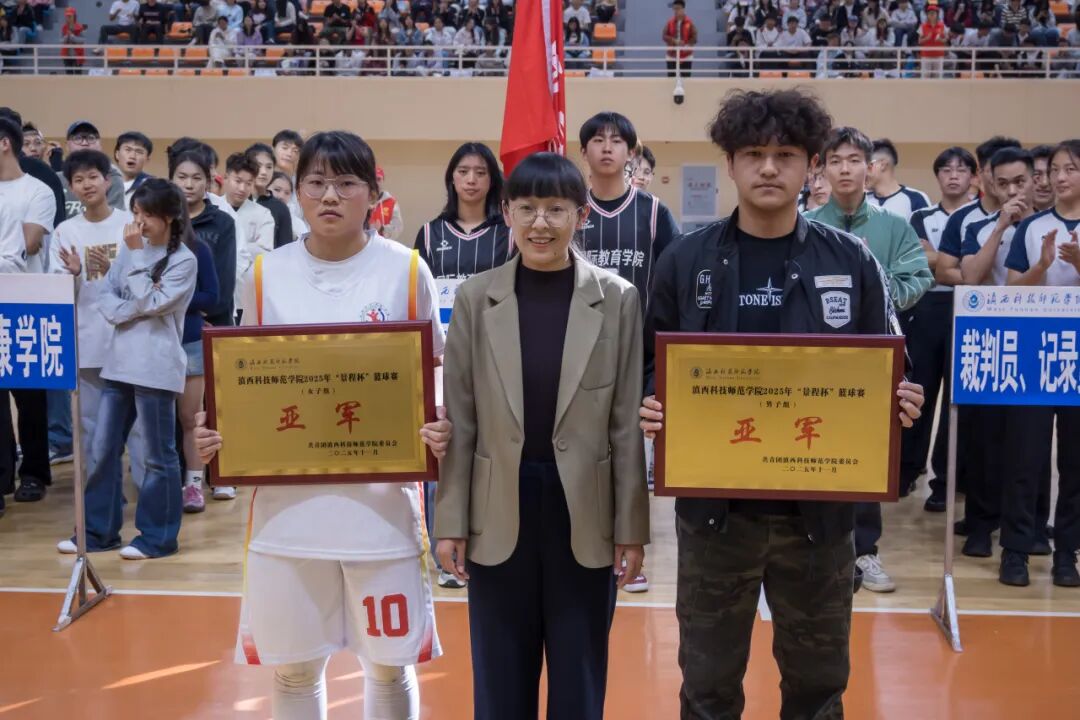 近日,滇西科技师范学院2025年“景程杯”篮球赛在学校篮球馆顺利闭幕。校团委书记李玲、副书记李虹、生物技术与工程学院党总支副书记王朝雯、体育与健康学院副院长李成均、景程教育校长龚世候出席闭幕式。